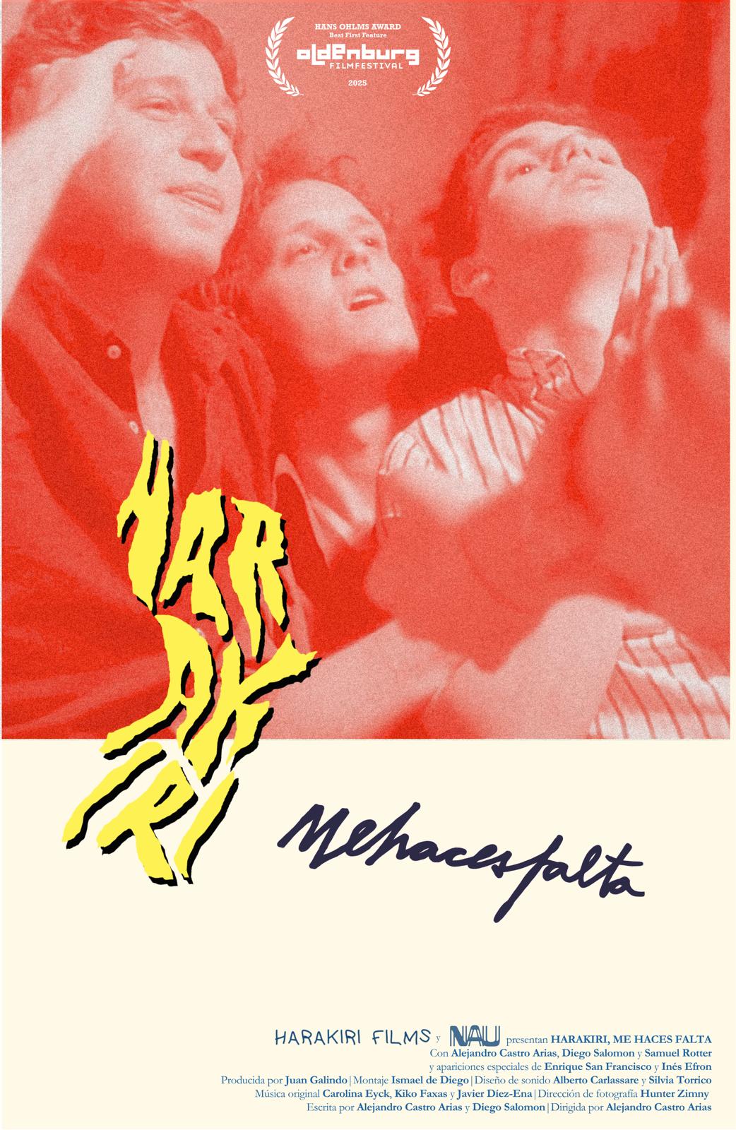 Tres jóvenes latinoamericanos — Alejandro, Diego y Samuel— vagan sin rumbo por un Madrid áspero y cotidiano. Cuando su curiosidad por una vecina misteriosa se convierte en fijación, forjan un vínculo tóxico alimentado por la arrogancia y el resentimiento hacia las mujeres. Lo que empieza como un juego de seducción termina en una noche de caos y desconexión, donde un taxista errante —figura fantasmal de otra generación perdida— refleja su propia deriva. Harakiri, Me Haces Falta es un retrato visceral de la masculinidad rota, la vergüenza y la violencia silenciosa.